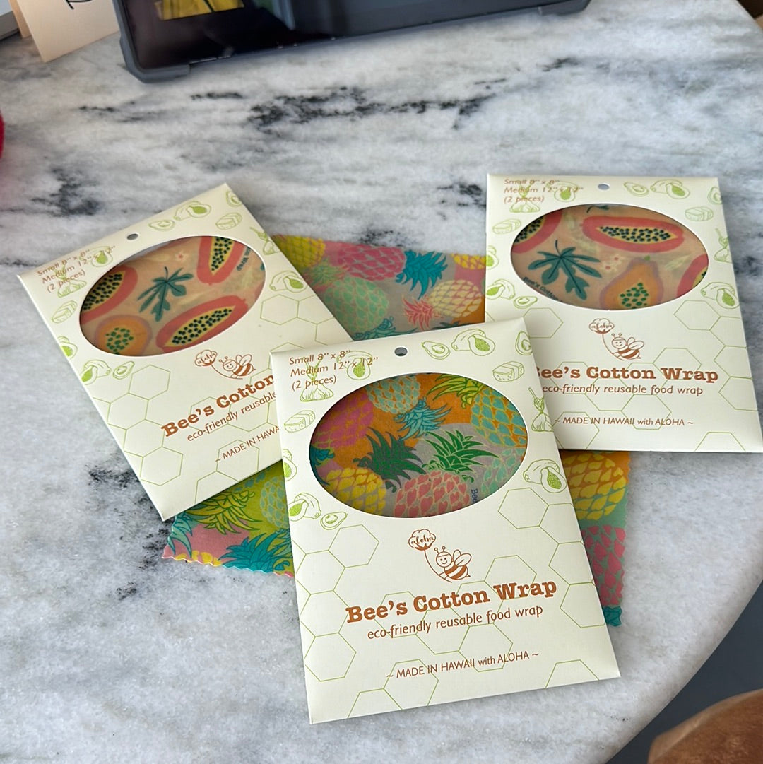 The beeswax and jojoba oil have antibacterial qualities that help to keep your food fresh and tasting good. It's perfect for wrapping snacks, fruits, vegetables, cheese, bread and even bowls. Bee's Cotton Wrap is not recommended for raw meat or covering hot foods.