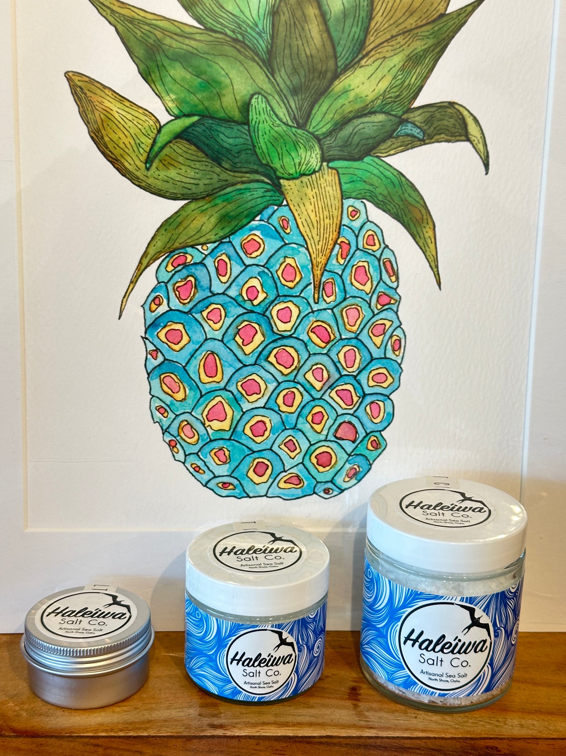 Haleiwa Salt Co. was born out of passion, perseverance, and necessity. Established officially in 2019, Haleiwa Salt Co. is a small two-person family operation producing Hawaii's Finest Sea salt hand-made in small batches from the north shore of O’ahu.
